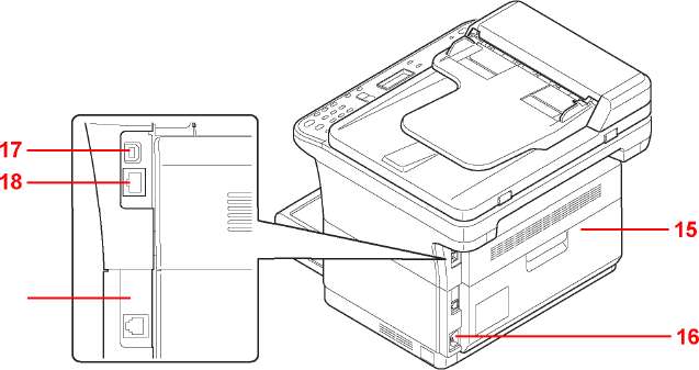 1 Подключите сетевой кабель (не поставляется) к разъему сетевого интерфейса аппарата.