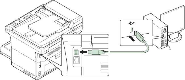 2 Подсоедините другой конец кабеля USB к разъему интерфейса USB компьютера.