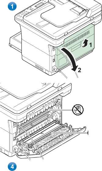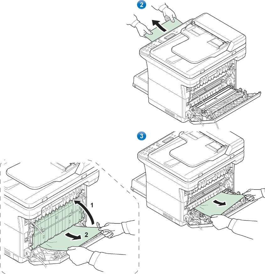Для удаления застрявшей бумаги из-за задней крышки выполните следующие действия.