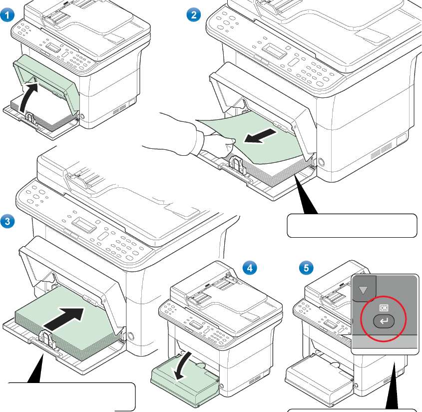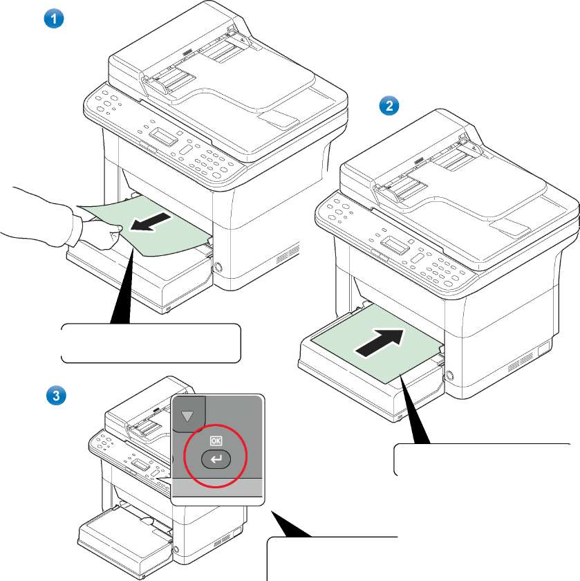 Повторно загрузите бумагу в лоток ручной подачи.