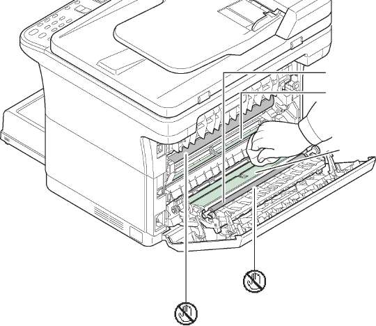 При очистке следите за тем, чтобы не коснуться валика переноса (черного).