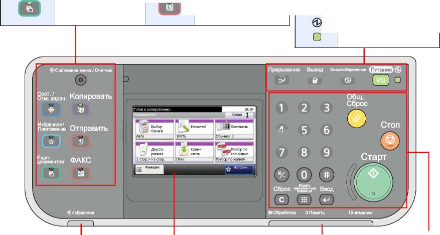 Для использования аппарата нажмите клавишу Питание. Время, необходимое для выхода аппарата из режима экономии энергии и восстановления нормальной работы, может быть больше, чем при выходе из режима ожидания.