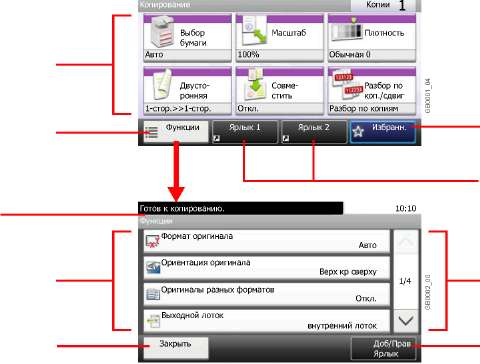 Запуск операции копирования и сканирования, а также выполнение настройки.