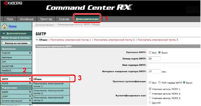 Command Center RX - управляющий инструмент для проверки рабочего состояния аппарата и изменения настроек безопасности, сетевой печати, передачи электронных сообщений и дополнительных сетевых настроек. В данном разделе рассмотрен доступ к Command Center RX, а также настройка параметров электронной почты.