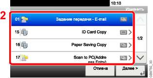 Отмена любого выполняемого задания печати или передачи.