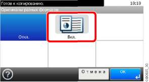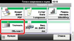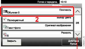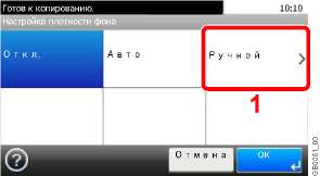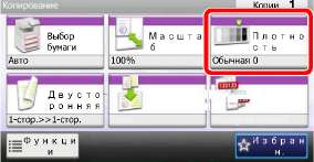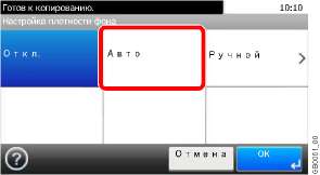 Удаление темного фона оригиналов, например газет. Эта функция используется с режимами "Полноцветный" и "Автовыбор цвета". Если функция "Автовыбор цвета" обнаруживает черно-белые оригиналы, настройка плотности фона отключается.