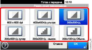 Возможные значения разрешения: [200 x 100 т/д - обычн.], [200 х 200 т/д - высок.], [200 х 400 т/д - супер], [300 х 300 т/д], [400 х 400 т/д - ультра] или [600 х 600 т/д].