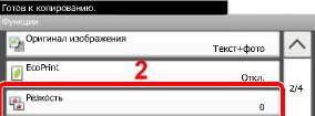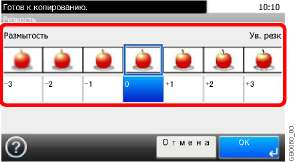 Для получения четких копий при копировании карандашных оригиналов с неровными и обрывистыми линиями следует регулировать резкость в направлении [Ув. резк.]. При копировании изображений, состоящих из печатных точек, таких как фотографии в журналах, на копиях виден муаровый* узор. Чтобы смягчить и ослабить эффект муара, следует регулировать резкость в направлении [Размытость].