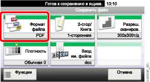 При сохранении документа в памяти USB выберите папку, в которой будет сохранен файл, и нажмите [Меню], а затем [Сохранить файл].