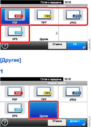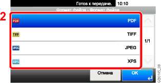 Выбор формата файла для изображений, подлежащих передаче или сохранению.
