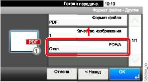Сохранение или отправка файла PDF. Можно указать формат, совместимый с PDF/A.