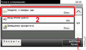2 Нажмите [Функции] и затем [Уведомл. о заверш. здн.].