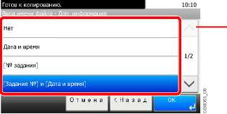 Добавление имени файла. Также можно задать дополнительную информацию, например номер задания, дату и время. При помощи заданных здесь имени задания, даты и времени или номера задания можно просмотреть историю заданий или состояние задания