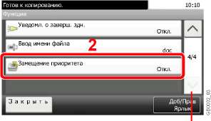Замещение приоритета может быть недоступно в зависимости от состояния текущего задания печати и использования памяти.