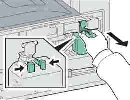 После возврата держателя контейнера скрепок в исходное положение, откройте крышку сшивателя и извлеките держатель с контейнером.