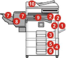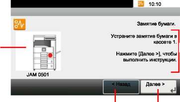 В случае замятия бумаги на сенсорной панели отображается сообщение Замятие бумаги, и работа аппарата прекращается. Для удаления застрявшей бумаги следуйте приведенным ниже инструкциям.