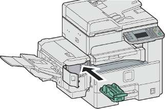 Для устранения замятия скрепки в дополнительном финишере, выполните следующие действия.