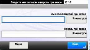 Если управления регистрацией пользователей заблокировано, отобразится экран аутентификации пользователя. Введите имя пользователя и пароль при входе и нажмите [Вход]. Для этого вам нужно осуществить вход с правами администратора. Заводские настройки по умолчанию для имени пользователя и пароля при входе приведены ниже.