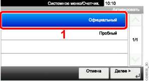 2 Нажмите [Официальный] и введите лицензионный ключ при помощи цифровой клавиатуры.
