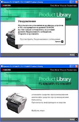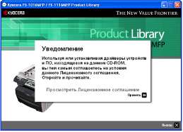2 Вставьте компакт-диск (Product Library) в дисковод. После запуска программы установки появляется уведомление о лицензионном соглашении.