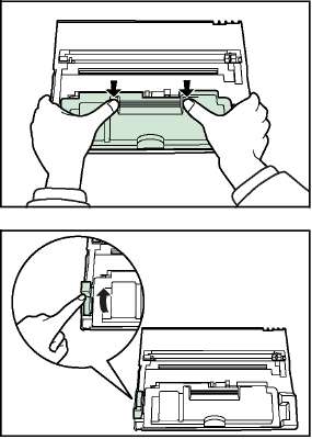 Не ставьте узел обработки на торец и никогда не подвергайте барабан воздействию дневного света более чем на пять минут.