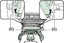 После очистки выровняйте штыри (C) с обеих сторон узла обработки с направляющими внутри аппарата и медленно вдвиньте узел обработки обратно в исходное положение до упора.