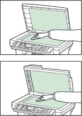 Откройте крышку оригинала и протрите стекло оригинала и крышку, как показано на рисунке.