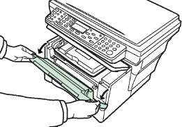Если очиститель зарядника не восстановлен должным образом, то на копиях будут черные полосы.