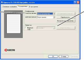 Используйте для выбора требуемого качества печати и цветового режима. Используйте режим качества печати Особый, чтобы выбрать режим Экопринт. В режиме экономичной печати вы получите более светлые отпечатки, но срок службы увеличится.