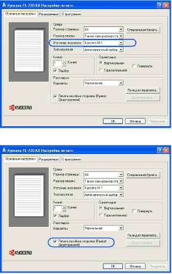 Убедитесь, что в диалоговом окне Настройка печати в качестве источника носителя выбрана Кассета № 1.