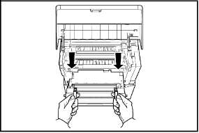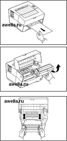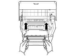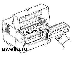 Откройте верхнюю крышку и вытащите узел проявления вместе с контейнером с тонером из принтера.