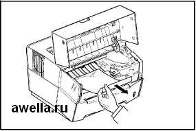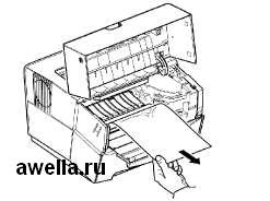 Если бумага подана лишь до металлического ролика регистрации, удаляйте ее со стороны лотка для ручной подачи.