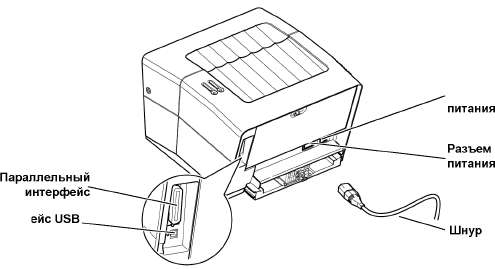Присоедините кабель принтера (в комплект не входит) к разъему параллельного интерфейса.