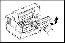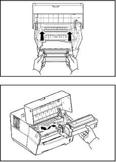 Откройте верхнюю крышку и вытащите узел проявления вместе с картриджем из принтера.