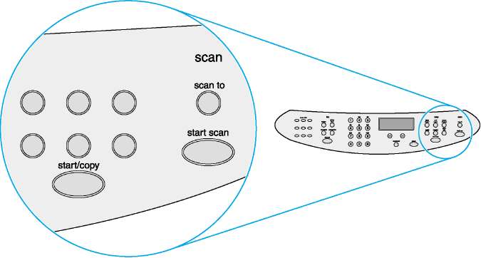 Эти элементы управления используются для изменения часто используемых параметров по умолчанию, для запуска сканирования и копирования.