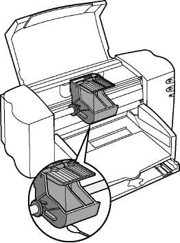• Принтер не будет работать, если в нем будет установлен только один. Если в одном из них закончатся чернила, оставьте его в каретке до тех пор, пока вы не будете готовы заменить его.