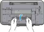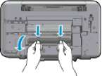 Если бумага замята внутри принтера, откройте крышку сзади принтера. Для этого нажмите на выступы по бокам крышки.