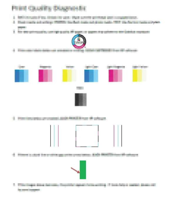 Осмотрите голубую, пурпурную, желтую и черную области, а также другое содержимое страницы диагностики.