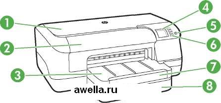 Кнопка и индикатор "HP ePrint". Нажмите, чтобы включить функцию "HP ePrint" и напечатать страницу сведений. Световой индикатор показывает, подключен ли принтер к серверу HP ePrint.