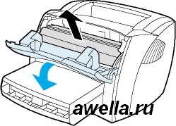 Чтобы открыть крышку, требуется приложить некоторое усилие. После открытия крышки оказывается в выдвинутом положении, что облегчает его удаление из принтера.