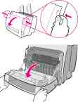 Откройте дверцу принтера для получения доступа к кассете с тонером, для устранения заторов и очистки принтера. Дверца принтера расположена на передней панели принтера. Для открывания и закрывания дверцы принтера возьмитесь с двух сторон дверцы в верхней ее части и потяните дверцу по направлению к себе.