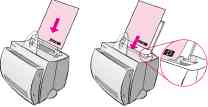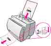 2 Вставляйте пленки верхним краем вниз стороной для печати (шероховатой стороной), обращенной к передней панели принтера. Отрегулируйте направляющие для бумаги и проверьте нормальную работу картриджа, при необходимости замените его новым.