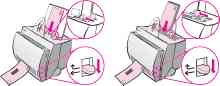 2 Загружайте конверты коротким краем (со стороны марки) вперед и стороной для печати, обращенной к передней панели принтера. Отрегулируйте направляющие для бумаги по размеру конверта.