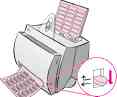 Не пользуйтесь наклейками, которые отслаиваются от подложки, сморщены или каким-нибудь образом повреждены. Не подавайте лист с наклейками в принтер дважды. Клейкая поверхность наклейки рассчитана только на однократное прохождение через принтер. Не пользуйтесь также наклейками для непрерывной подачи или наклейками, которые должны быть увлажнены для приклеивания.
