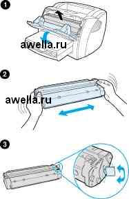 2 Чтобы перераспределить остатки тонера, следует несколько раз его встряхнуть.