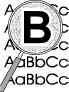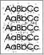 • Присутствие большого числа частичек тонера вокруг наружного контура буквы свидетельствует о том, что тонер недостаточно хорошо зафиксирован на поверхности бумаги. (Небольшое количество частичек тонера является нормальным явлением при печати на лазерных принтерах.) Попробовать другой тип бумаги.