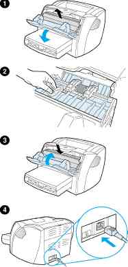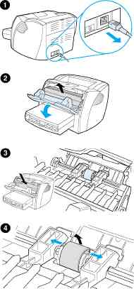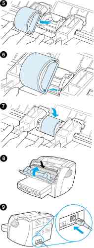 8 Установить на место подающий ролик и подающие лотки. Вставить шнур питания в розетку и включить принтер.