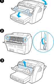 Вблизи питающих лотков Если застрявший лист бумаги не полностью вышел из подающего лотка, его можно попытаться осторожно удалить из механизма принтера, не порвав при этом бумагу - Если для удаления застрявшего листа требуются значительные усилия, см. указания в разделе Удаление застрявшей в механизме страницы.