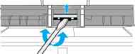 4 Освободить фиксаторы (белого цвета) с обеих сторон ролика и повернуть ролик вперед.