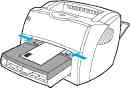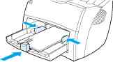 1 Загрузите бумагу в принтер верхним краем вперед и лицевой стороной для печати вверх. Установите направляющие по ширине бумаги.